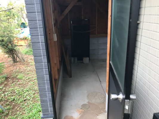 さてガレージですが、玄関の先にガレージの裏手口があります。