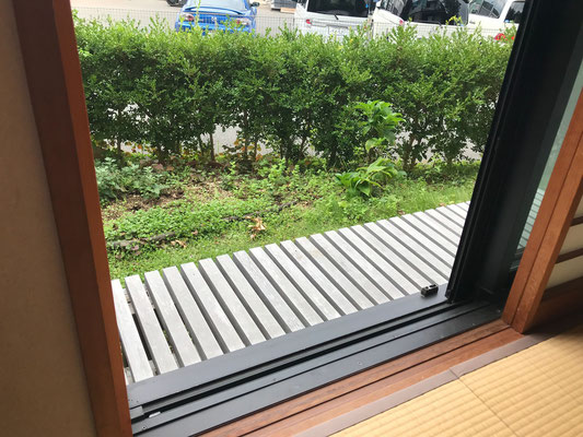 和室の窓を開けると縁台があり、ちょうど庭先が見えるようになっています。