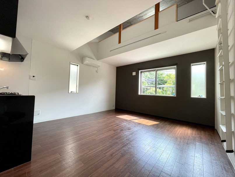 お部屋の一部は吹き抜けになっていてハシゴを使ってロフトにアプローチ出来ます。