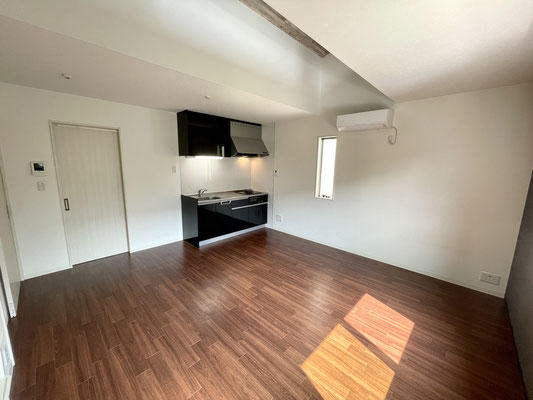 お部屋の中にはブラックなシステムキッチンもあります。