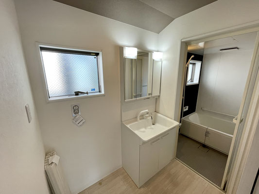 洗濯機置場と独立洗面台がある脱衣所にも換気が出来る子窓付き♪