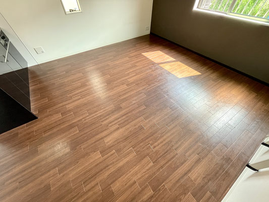 ブラウンのアクセントクロスがオシャレで落ち着く空間〜