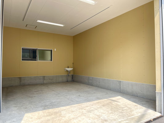 電動シャッターを開けるとガレージ内部はご覧の通り〜