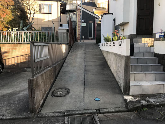 道路からのアプローチを見て頂けるとわかると思いますが広さ的にはバイクや自転車がぴったり♪