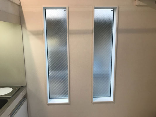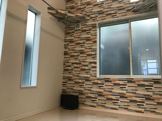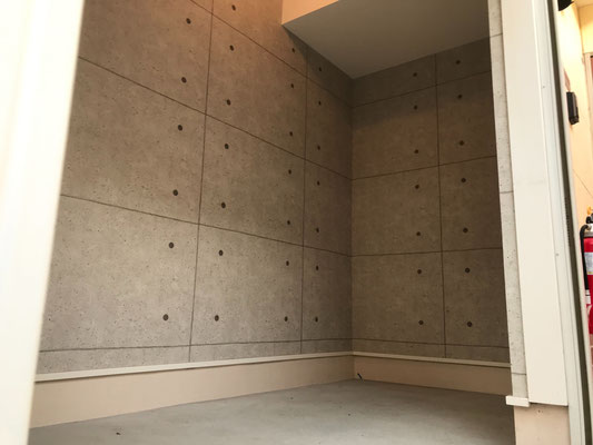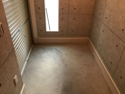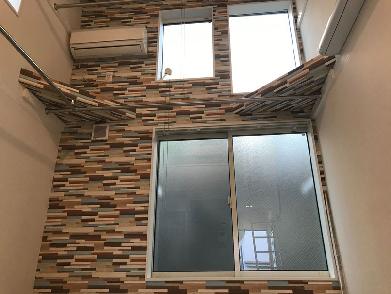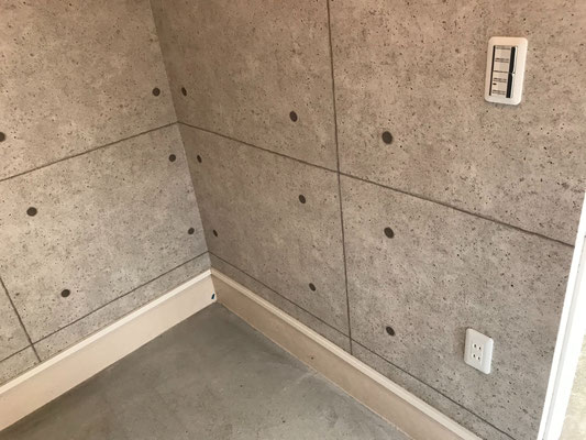 コンクリート調の壁紙がカッコいいですね〜 採光の為の窓やセンサー付きの照明も完備!