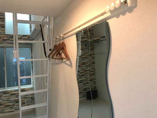 室内の至る所にハンガーラックのパイプがあり「魅せる収納」が出来そう♪