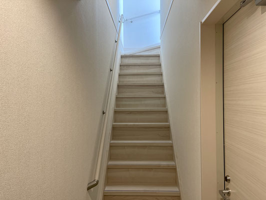 ドアも階段も白のウッドだから明るく見える♪