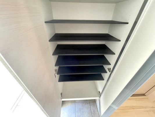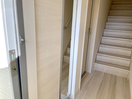 入ってすぐに姿見付きの下駄箱収納。