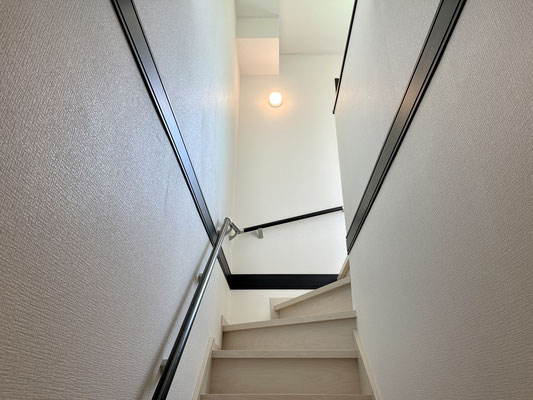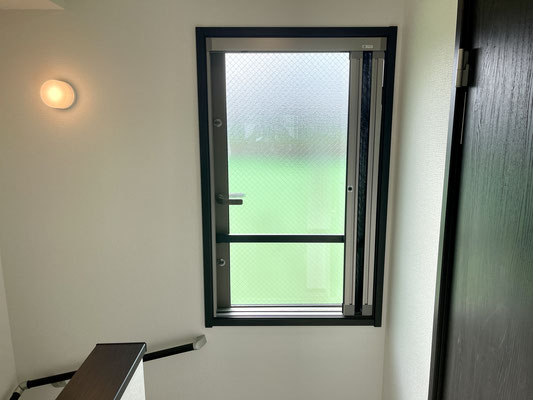 玄関を入って2階に伸びる階段を登ると大きな窓。