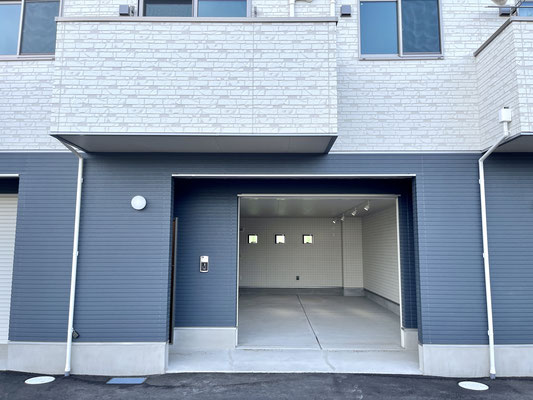 それなりの大きな車両でも駐車出来そうなサイディングボード仕上げのガレージ。