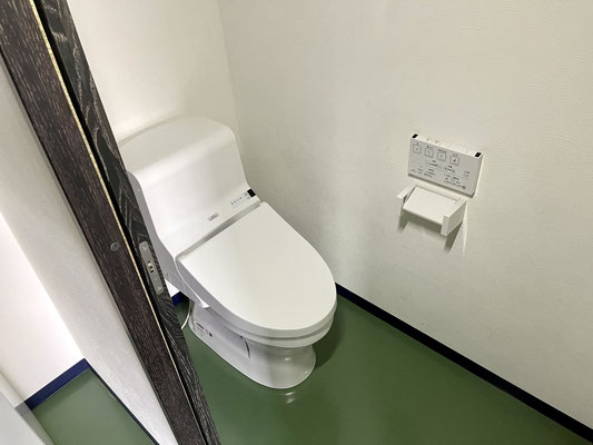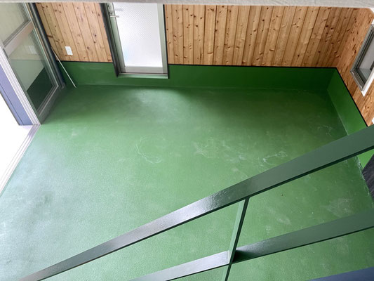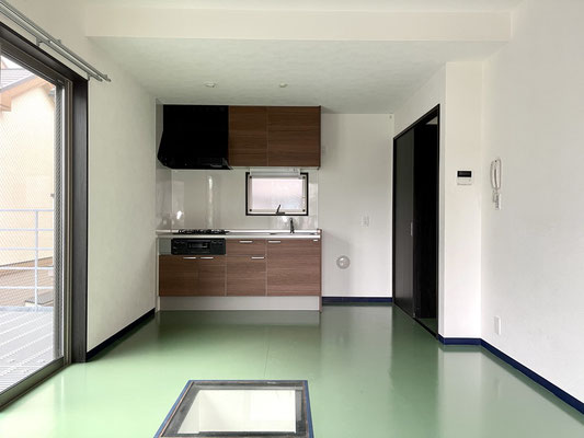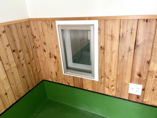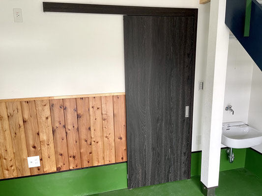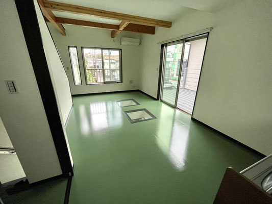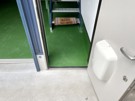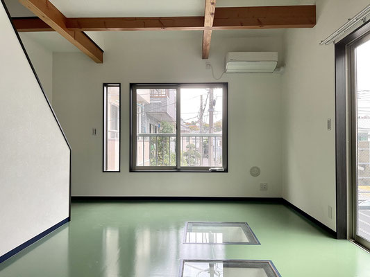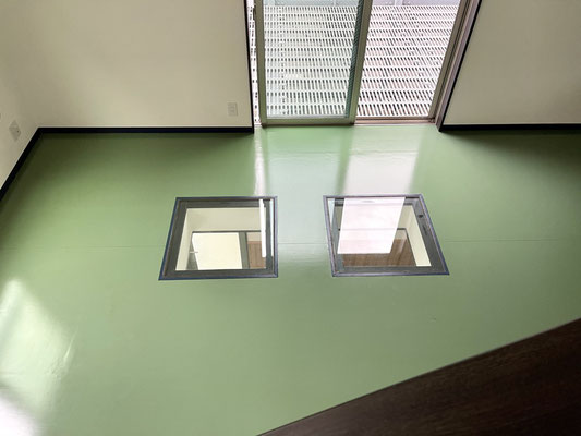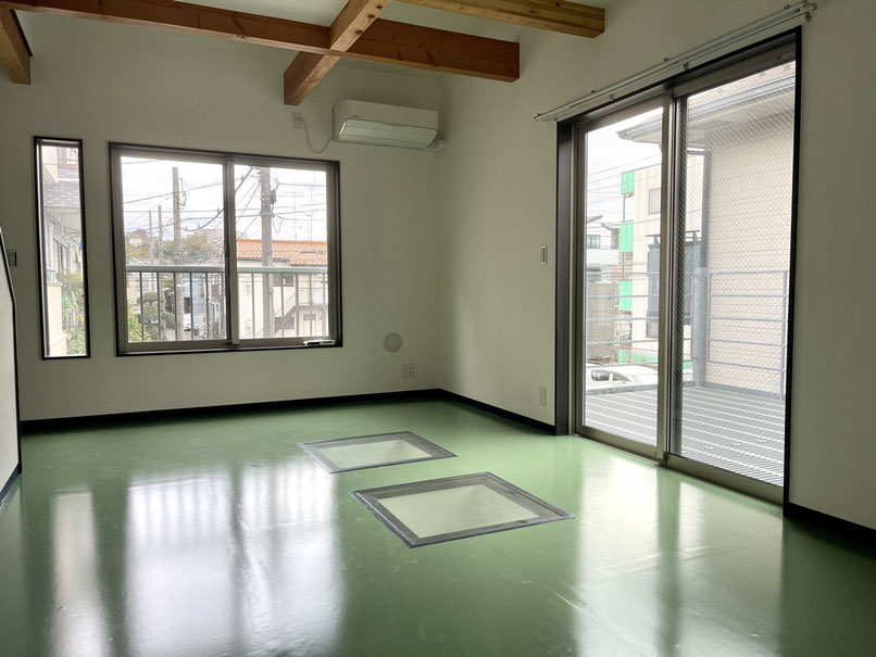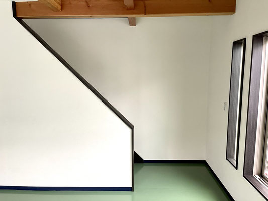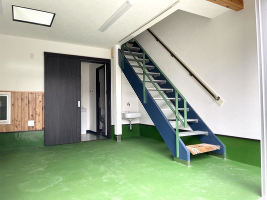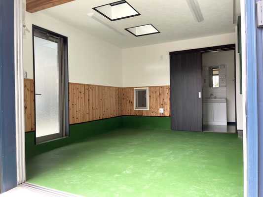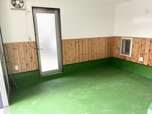 ガレージとはまた質感が違いますがグリーンの床で統一。