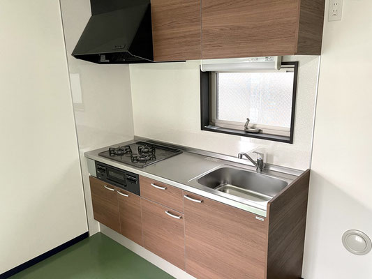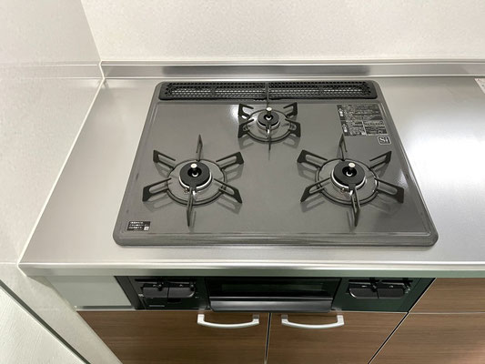 お部屋の入口側には3口コンロのシステムキッチンもあります。