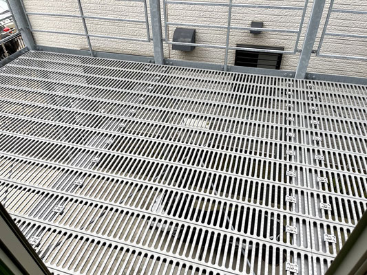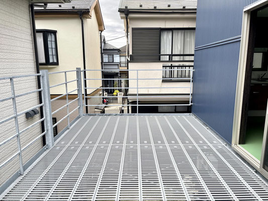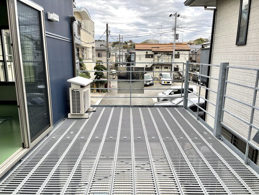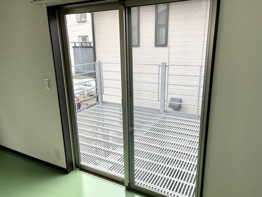 お部屋の一方には大きな窓があり、駐車場の上にある大きなベランダにアプローチ。