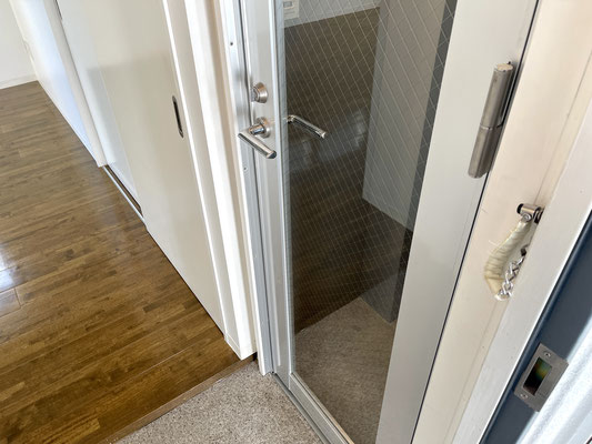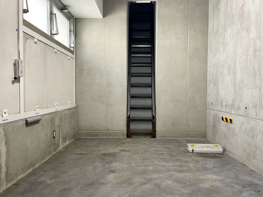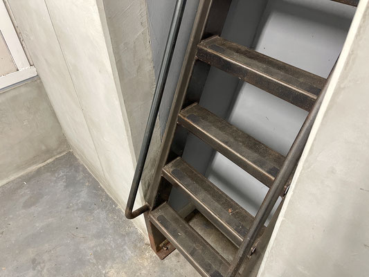 ガラス扉を開けると1階のガレージに降りれるハシゴ?階段?があります。