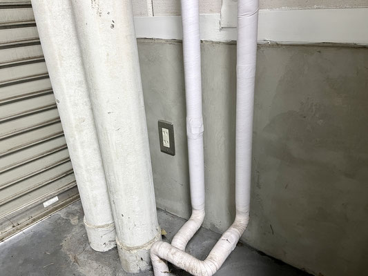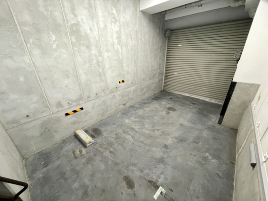 剥き出しのパイプやコンクリート床のオイル染みが男らしいガレージです♪