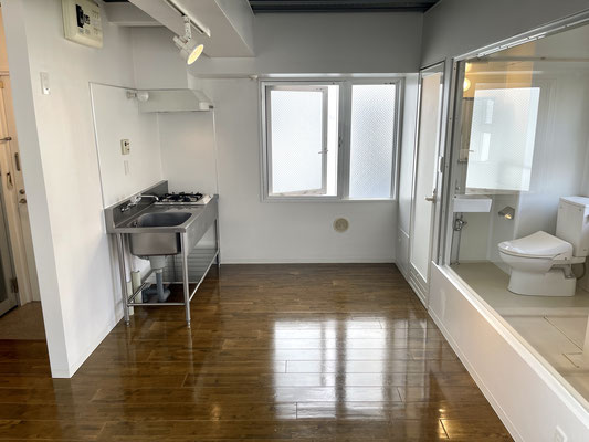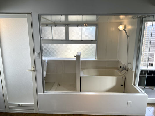 スケスケのバスルームにも大きな窓があり明るい空間です。