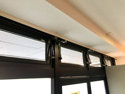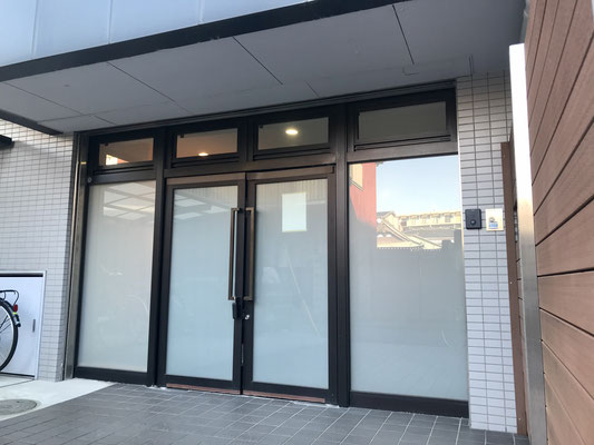 玄関扉はお店のような両開きのガラス扉。