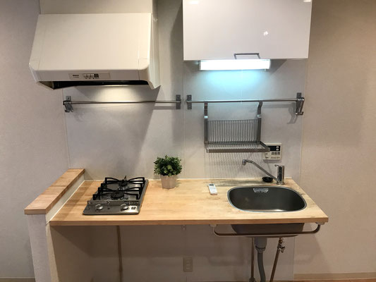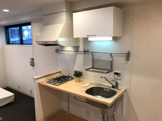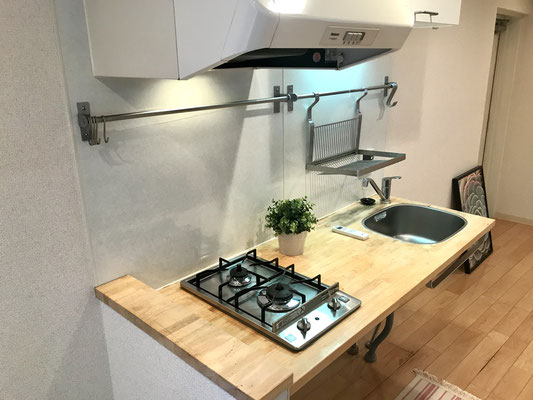 ガレージ隣の小上がりを登るとそこはキッチンスペース。