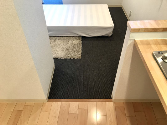 塩ビシートの床は滑りづらく耐久性が高いのが特徴。