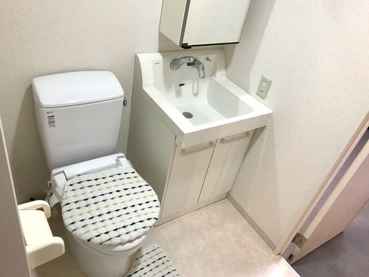 ウォークインクローゼットの隣は洗面台のあるトイレとバスルーム。
