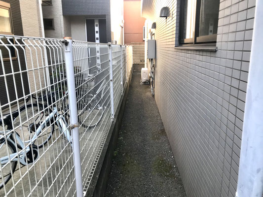 横の路地からエントランスにアプローチ出来ますが、今回はその奥1階「105」号室のご案内です。