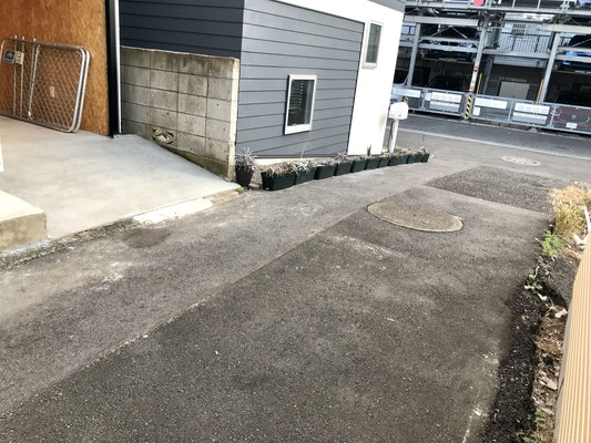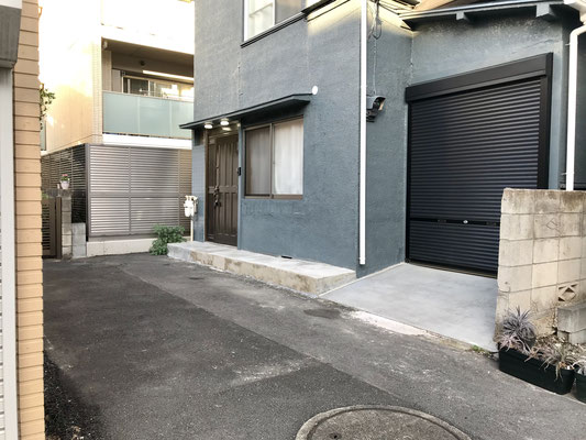 シャッター前や物件前の道路は少しだけ傾斜がありますので車両を入れる際には注意して下さい。