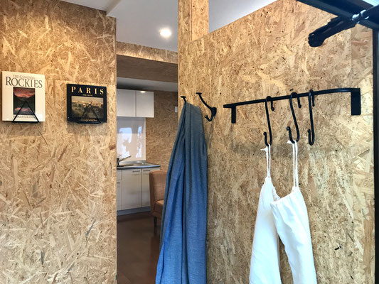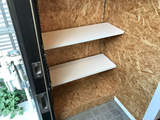 入ってすぐ左側には靴なども置ける棚が設置されています♪