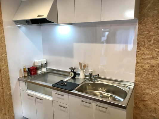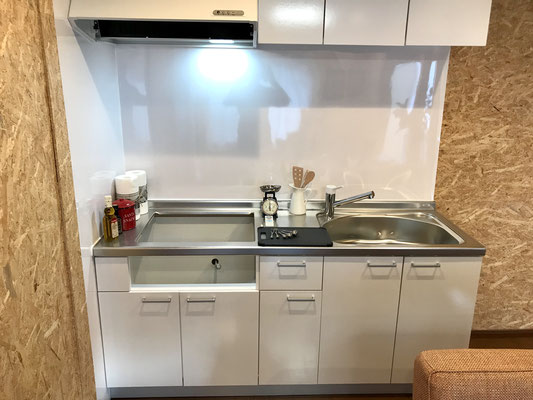お部屋の奥には白の可愛いキッチンもあります♪