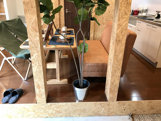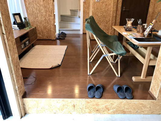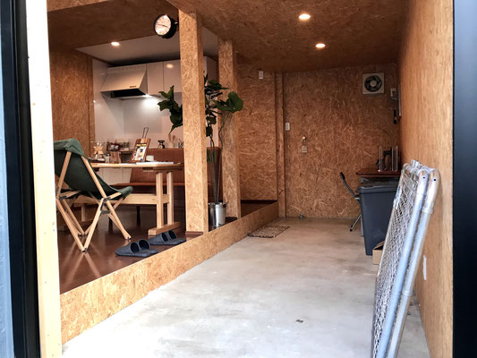 LDKと隣接しているガレージは新しく土間が作られて、ガレージリビングになっています。