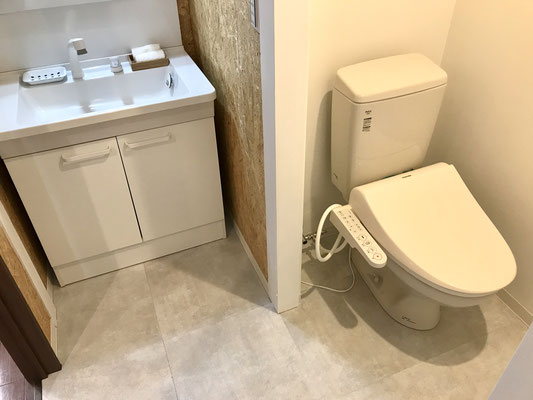 キッチン横の扉を開けると洗面台とトイレ。