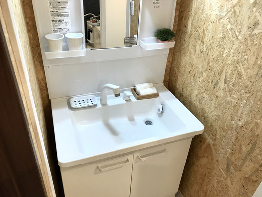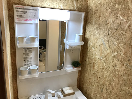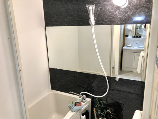大きさはさほど大きくはないけど大きな鏡のおかげか圧迫感は感じません。