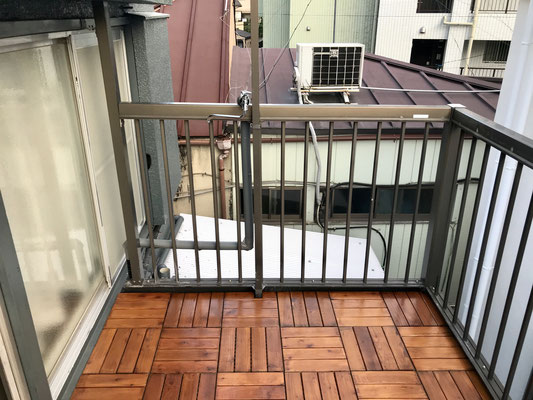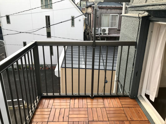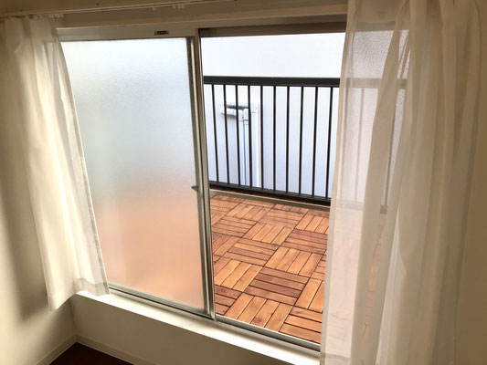 広〜いベランダはウッドデッキのような雰囲気でここも良い雰囲気でくつろげそう♪