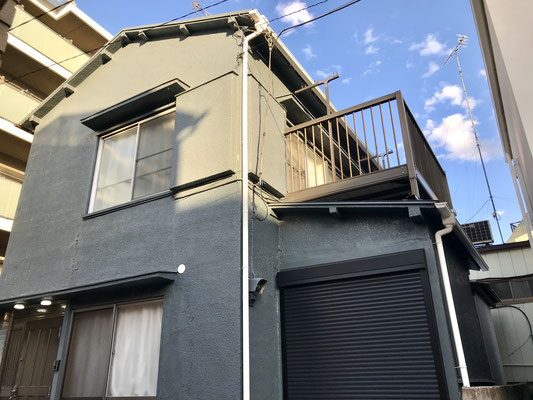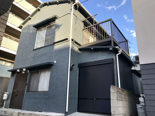 ブルーグレイに塗られた外壁と新しいシャッターが目を引きます。