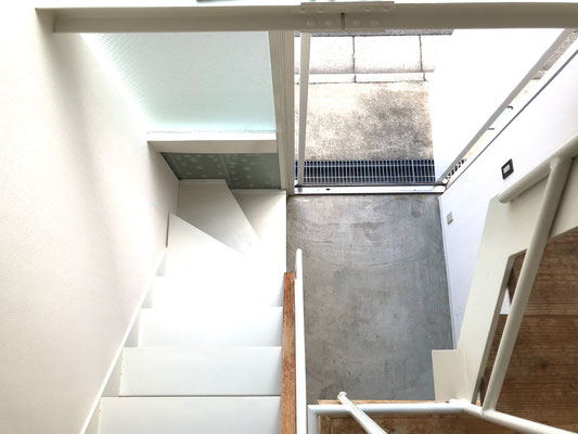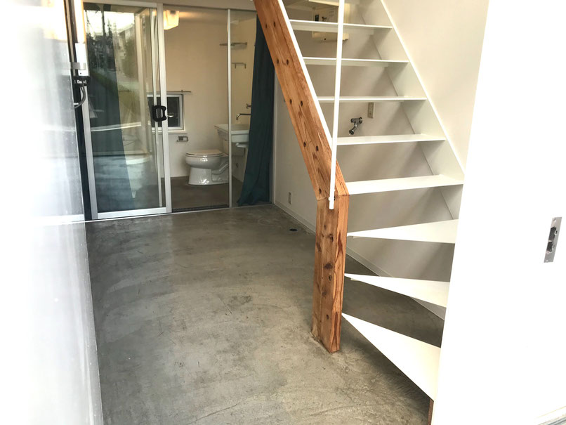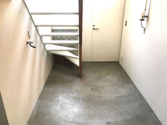 階段の後ろは洗濯機置場になります
