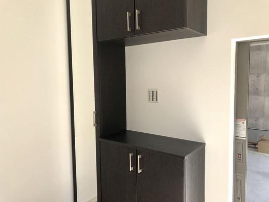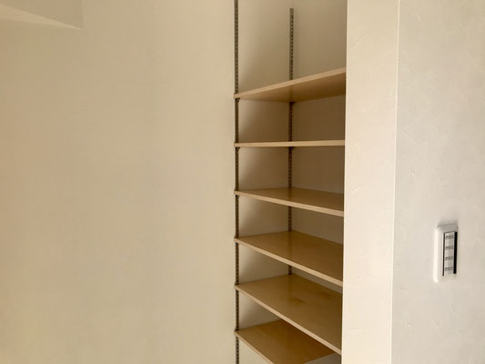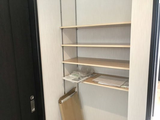 高さ調整可能な棚がありますのでなにかと荷物が増えてしまうこの空間もスッキリ使えるんじゃないでしょうか。