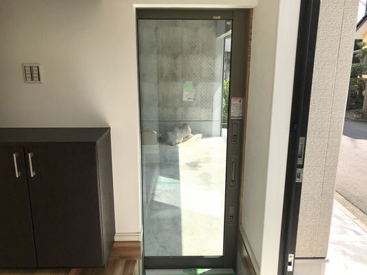 玄関を入って右手にはガレージに通じているスライドドアがあります。