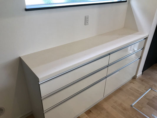 食器洗い機は引き出し型のビルトインタイプでスッキリ。