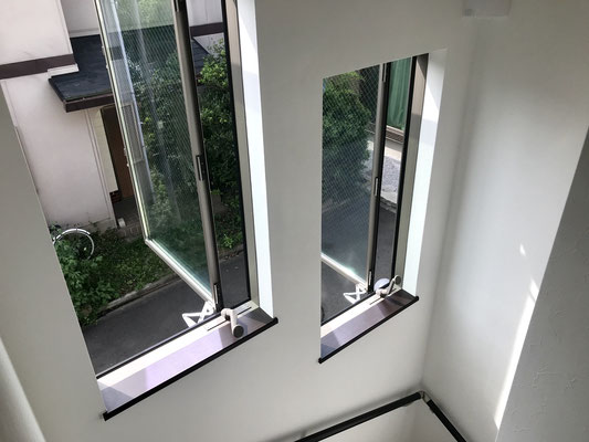 階段にも大きな窓が2つ。