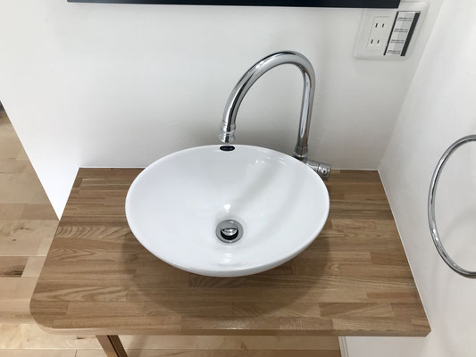 階段を登ったところには2階のトイレと可愛い洗面台があります。