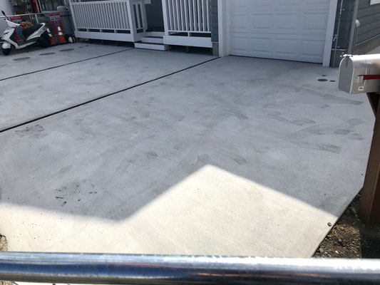 ガレージ以外にも車なら2台はゆったり停められそうな敷地。