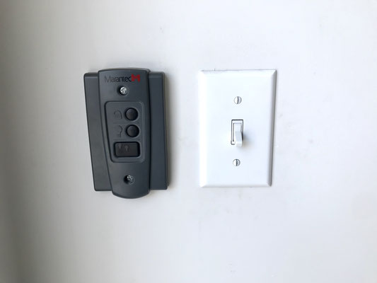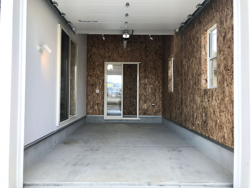シャッターはオーバースライド型の電動シャッター。