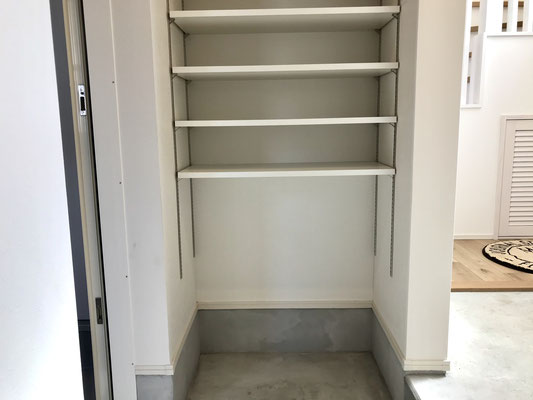 その途中にあるのが大型のシューズインクローゼット。