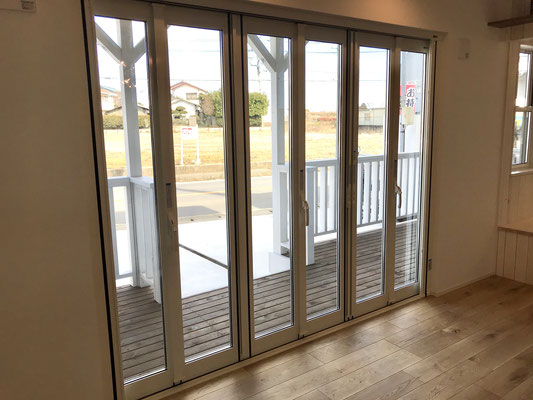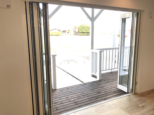 アコーディオン式のドアを開けるとそこはもうアウトドアリビング♪