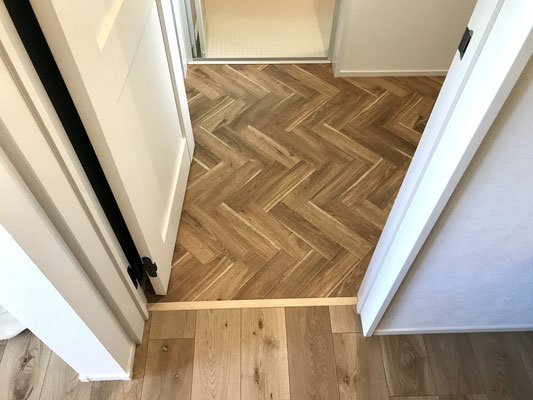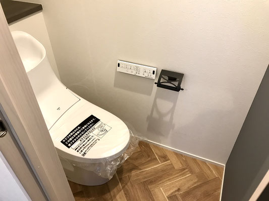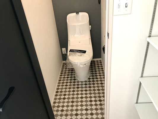 1階のトイレはヘリンボーン柄の床材でしたが、こちらはモロカンタイル調。
