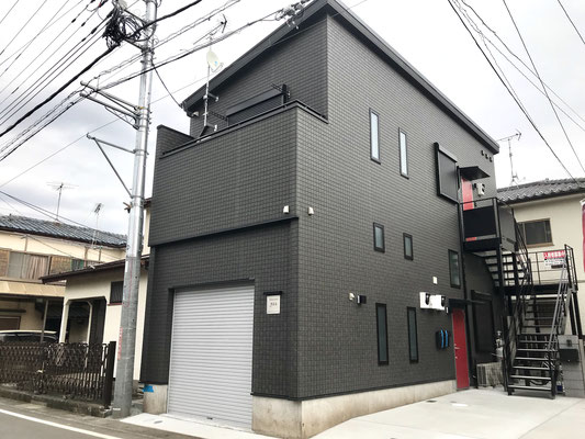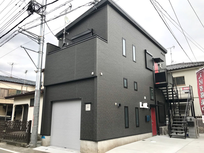 建物外観は黒のタイル外壁で精悍なイメージ。