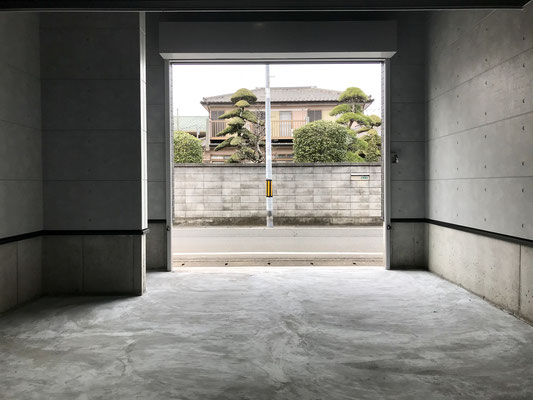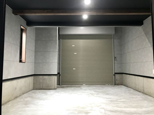 もちろんシャッターは電動シャッター! 洗車のための水栓や100V、200Vの電源も確保。