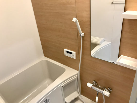 追い焚き機能や浴室乾燥機付きのバスルーム。