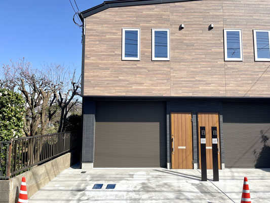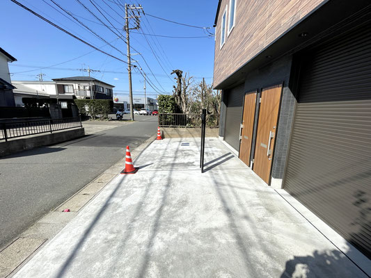 シャッター前のスペースは軽自動車ならばギリギリ駐車可能なサイズですが、