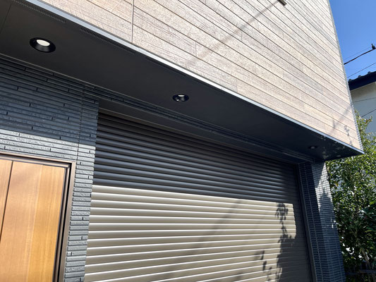 ガレージシャッターのすぐ隣には玄関ドアがあり、人はコチラからの出入り。