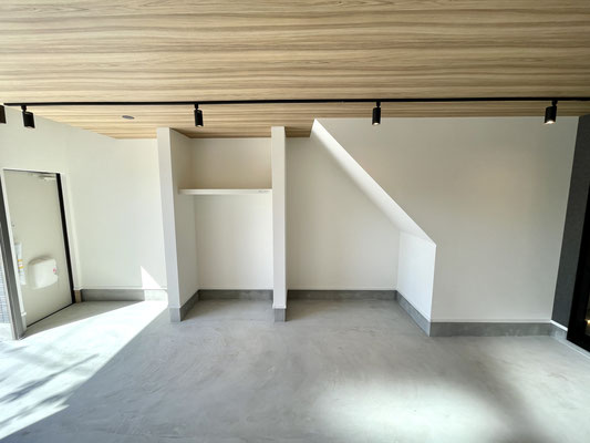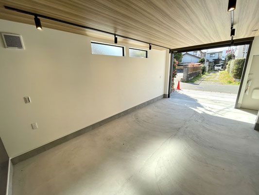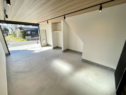 電動シャッターを開けるとガレージ内部はこんな感じ〜